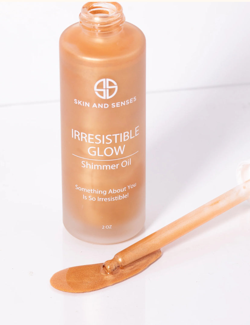Irresistible Glow Shimmer Oil is a luxurious shimmer oil designed to moisturize and illuminate the skin giving you radiant looking skin that glows. This oil-based formula melts seamlessly into the skin to help blur imperfections, easily layers to build your ideal glow.