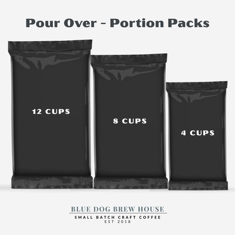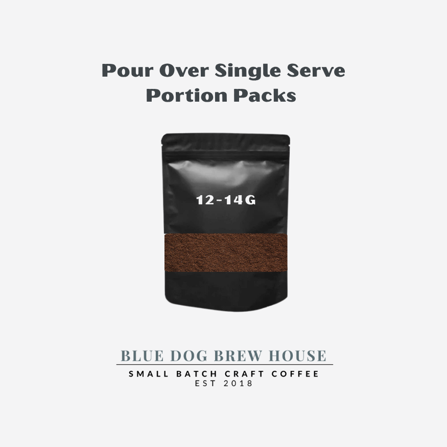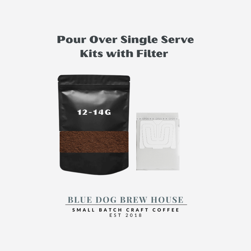 Single Serve kits contains 1 filter 1 coffee pouch holding 13-14 grams of coffee artfully ground to meet the optimal requirements for the pour over brewing style.